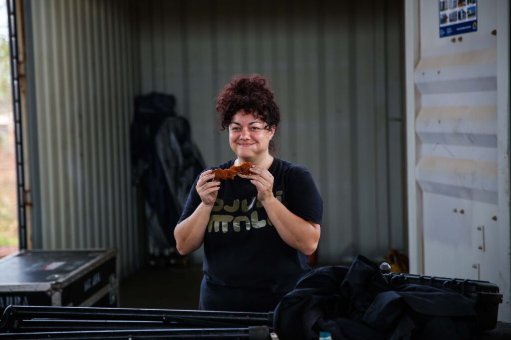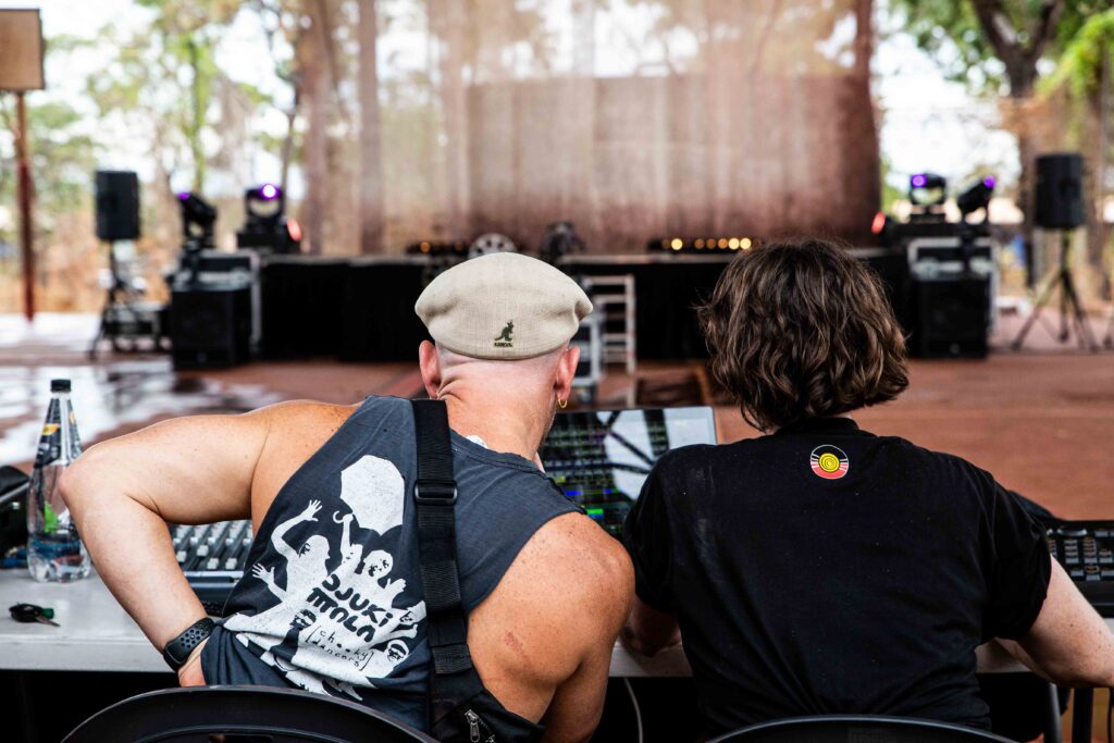Another dear old friend Tom Flanagan was invited along to perform his amazing clown show Kaput, which went down a treat. Some of the OG Djuki boys jumped up for the signature Zorba dance – the reaction to which was one of the best live performance moments that I have experienced in many years. And Djuki Artist Wakara Gondarra and his partner Jaz brought their son Muwarra to the Island for the first time, just in time for his first Birthday!