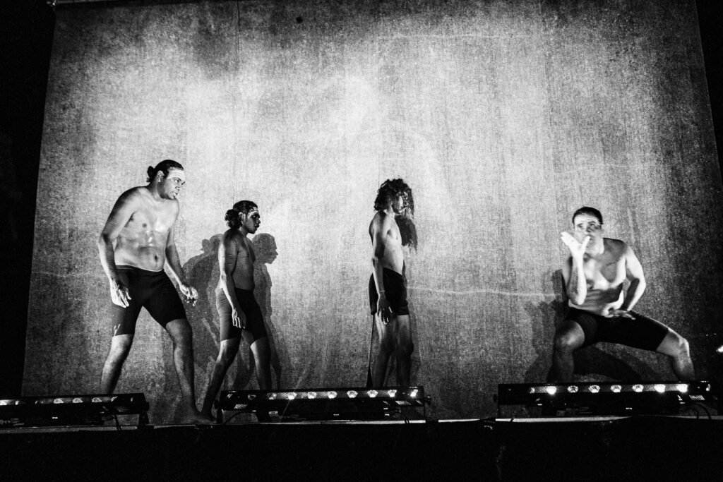 Featured Djuki Dancers: Baykali Gunambarr, Wakara Gondarra, Watjarr Garmu, Tibian Wyles, Didi Yunupingu, Djapana Wunungmurra